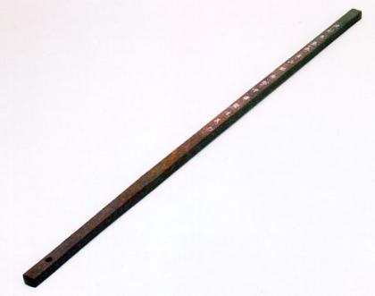 この指揮棒で味方を指揮したり、敵兵を殴って攻撃したとされています。 刀というのは意外と重く扱い難いものですが、この指揮棒は刀以上の重さです。